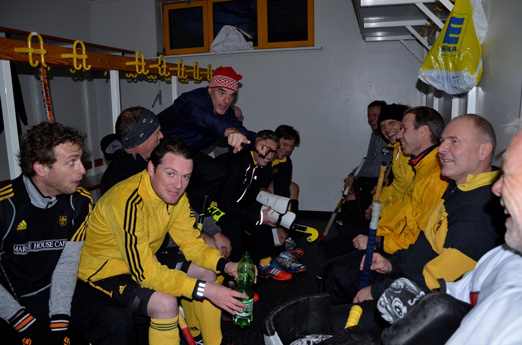 Zwischendurch erfahren wir den Spielstand des Pokalendspiels; Ausschnitte und Tore des Spiels werden zu später Stunde in Sport clips nicht vermisst und in Nachtmagazinen, Nachrichten oder online geguckt. Ehrungen und Reden wechseln sich ab, Preise werden überreicht, Rührungen sind kaum zu verbergen, da werden sogar hart gesottene Regenmänner schwach. Mit zunehmendem Konsum steigt die Gemütlichkeit und die Lautstärke. Tom kommt mit alten und neuen Witzen rüber, die manchen schon fast überfordern. Und plötzlich lüftet Rolf U ein Geheimnis: Junior hat für dieses Wochenende nur Golfsachen mit. Jochen St hat sich schon über den strengen Geruch und den leeren Schrank sowie das verarmte Bad gewundert. Junior ließ seine Tasche vor Rolfs Haus im Auto. Von Freitag auf Samstag konnte ja noch gewendet werden, doch mittlerweile…